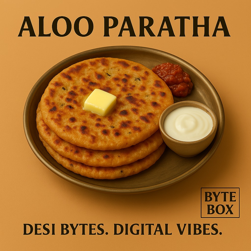 Whole wheat flatbread stuffed with a bold mash of boiled potatoes, green chillies, coriander, cumin, garam masala, and dry mango powder. Rolled and roasted on a hot tawa with desi ghee till golden and crisp. Served hot with a dollop of butter, tangy pickle, and chilled curd. It’s the breakfast that built North India — flaky, fiery, and full of flavor.